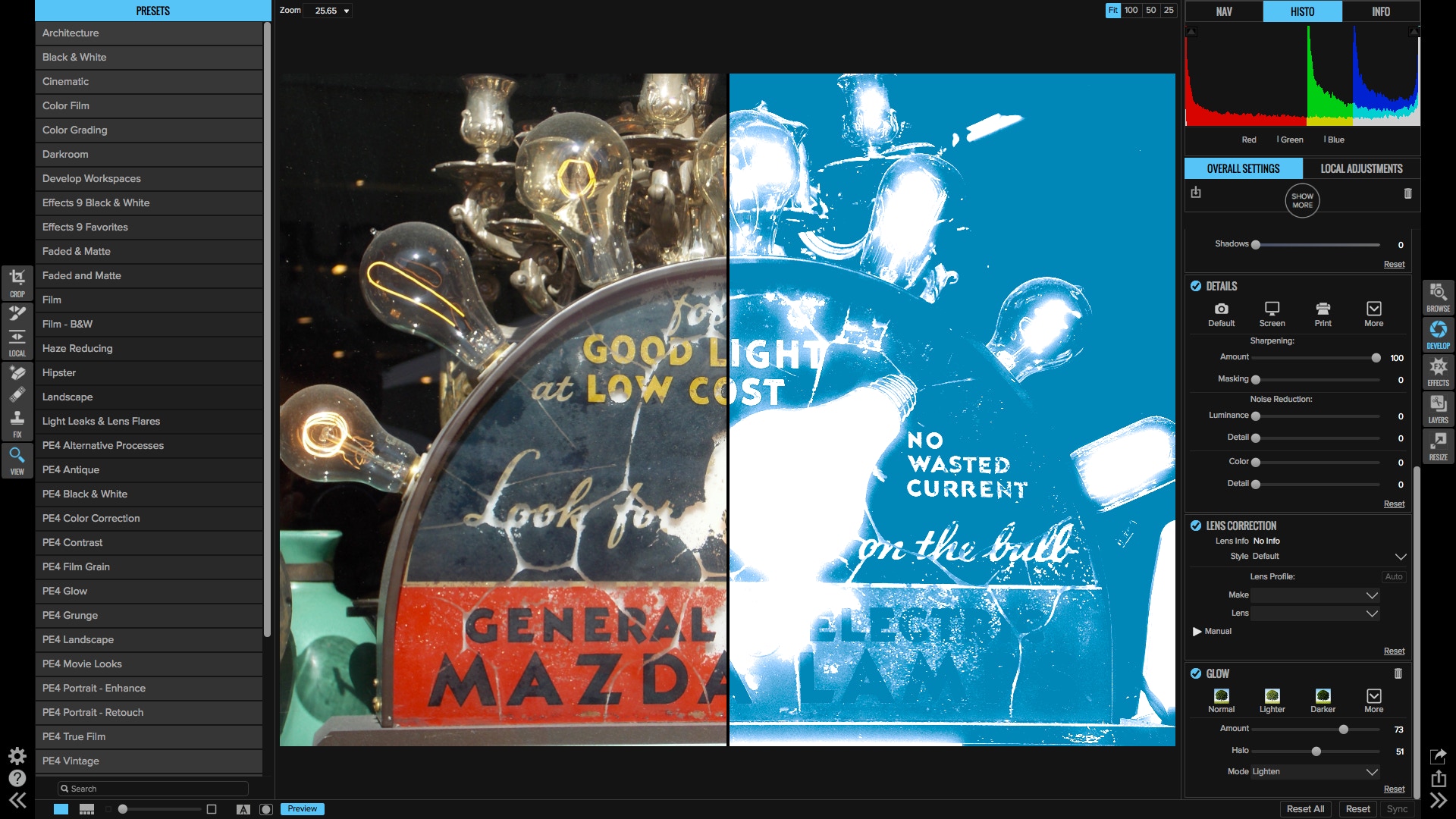 Let’s take an image into the Effects module and see what can be done with it there.