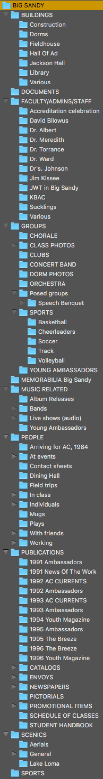 Included are over 3500 mostly high-resolution JPEG images from Pasadena and Big Sandy and 72 music and overseas project lecture mp3s (28 hours’ worth), most created between 1982 and 1996. Also included are copies of Mike’s published photographic work as it appeared in various church and college newspapers, magazines, yearbooks, promotional materials and other publications, as well as selected Ambassador-related memorabilia and documents. The more recent Pasadena campus destruction/construction is also represented.