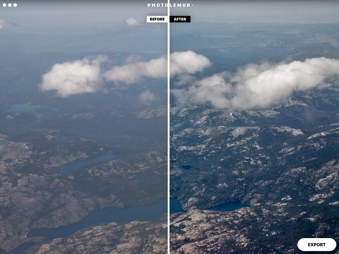 In the case of my non-DSLR shots taken out of a plane window from a high altitude (screenshots below), Photolemur cut right through the blue haze and revealed detail in the scenes that would be missed otherwise. (Side note: Some smoggy cities could make do with an environmental version of Photolemur!)