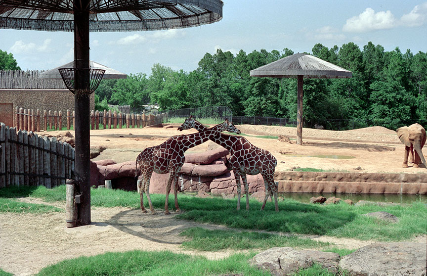 Now let’s continue climbing up the evolutionary scale of digital quality to hi-res scans from 35mm film, in the following cases, photos shot in the early-to-mid 1990s. Here is the full-frame of a couple of giraffes at a zoo in Texas, reduced, for reference: