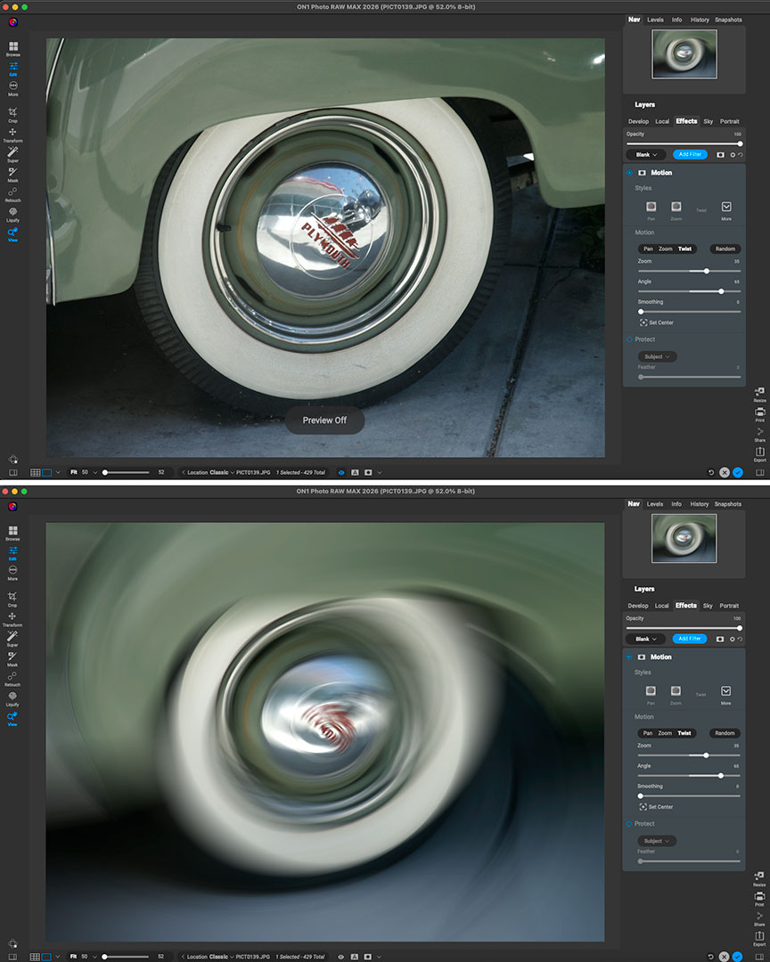 Let’s do the twist! “Add Realistic Motion Blur Right at Your Desk”, in this case to a classic car tire: