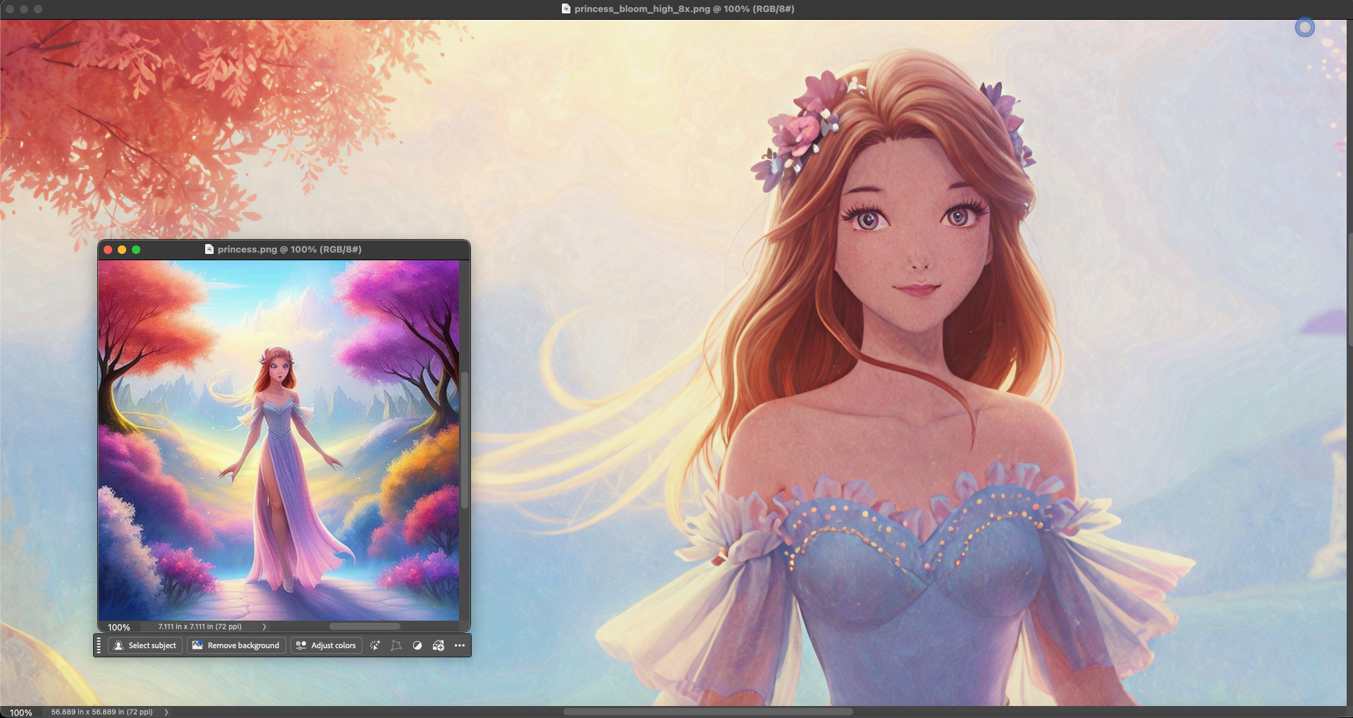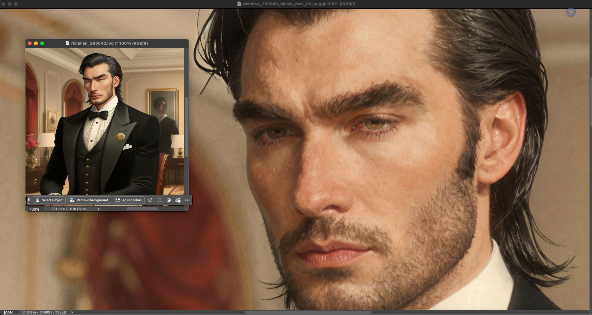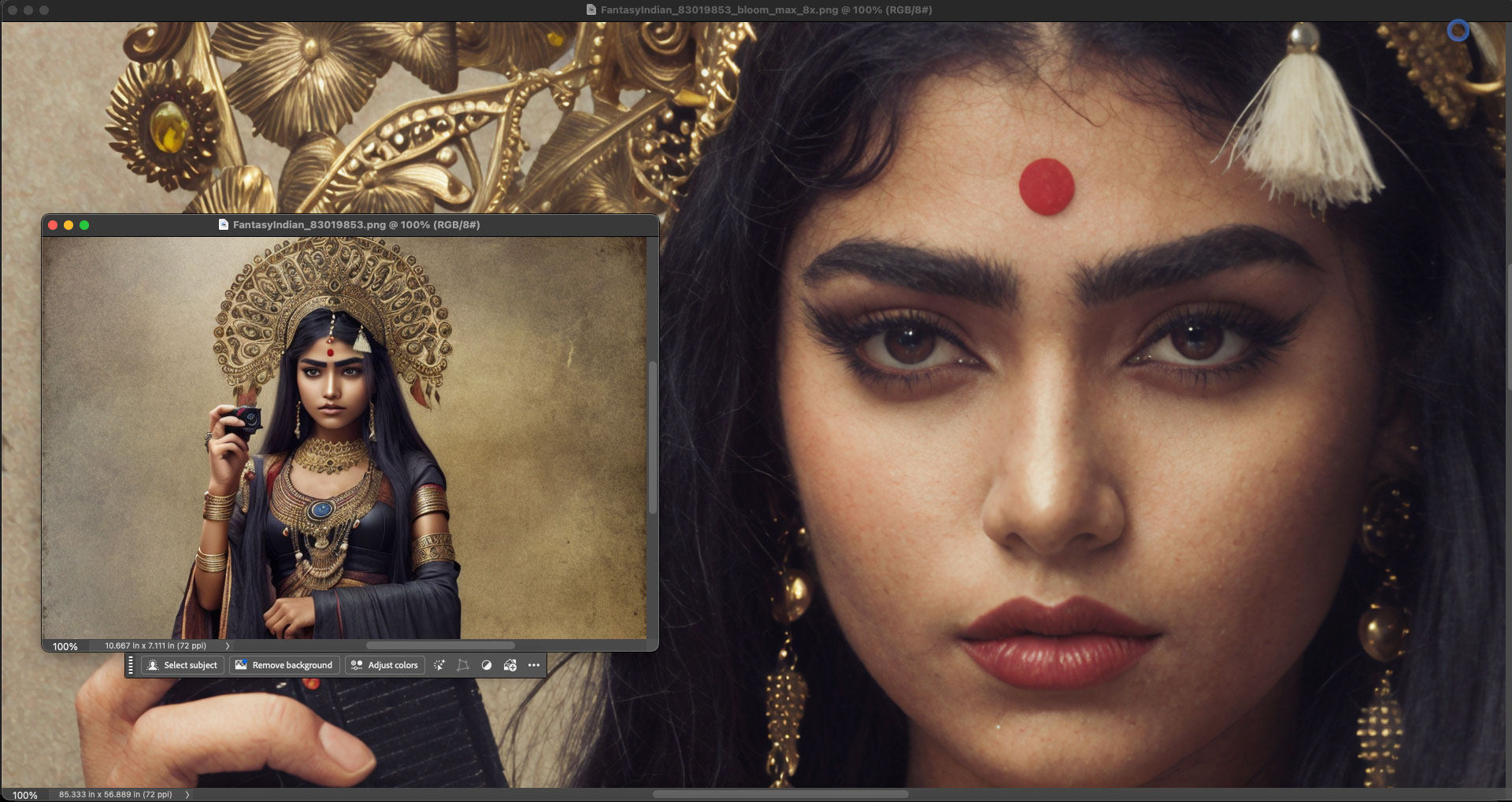 (Note: For the sake of honesty in presentation, the original AI renders and Bloom results were not prepped or retouched in these screenshots, though all could use some Levels work and minor spotting, etc. Please view the results at 100% for the best detail):